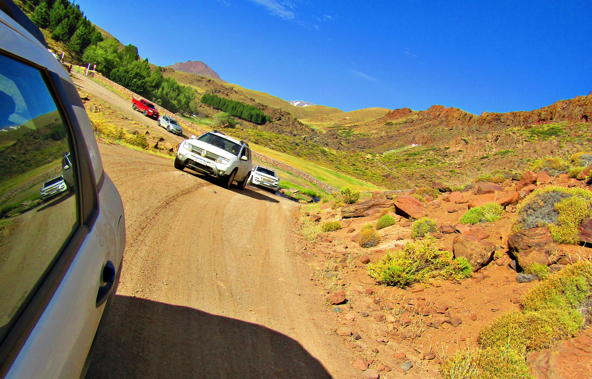 NQN.NORTE La caravana moviéndose por los serpenteantes caminos del Norte Neuquino, rumbos a las aguas calientes del Domuyo...